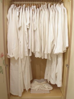 白いパジャマ、ネグリジェ、ローブがよろしゅうございます。