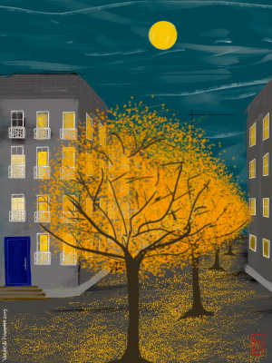 イチョウが黄金色の絨毯を敷き詰めた マンションの中庭。 今日は満月のようです。 ロマンチックな気分に浸りましょうか? まさか、満月の夜だからって、 ドラキュラなんて 出てはきませんよね。 |