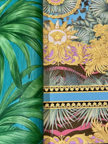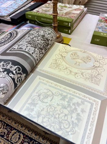 ピンク色のかわいい壁紙を貼って、同じ柄のカーテンを掛け、