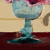 ピーコック ブルーの壁の廊下に デコラティブ曲線を描くカウチ 左右には猫足のコンソールテーブル その上には、ガラスのシェードランプ まるで高級ホテルのラウンジのよう。 壁に掛けられたオレンジ色の背景に 溶け込む溶け込むように ミステリアス 微笑みを 浮かべる女性 さて、誰なのか? |
