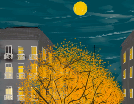 イチョウが黄金色の絨毯を敷き詰めた マンションの中庭。 今日は満月のようです。 ロマンチックな気分に浸りましょうか? まさか、満月の夜だからって、 ドラキュラなんて 出てはきませんよね。 |