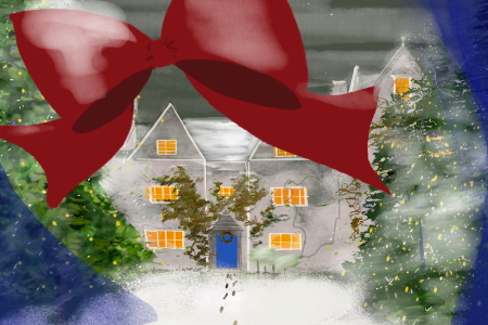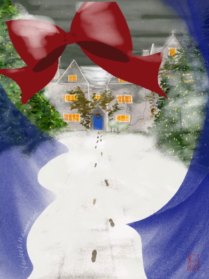 雪の中、 洋館の中に灯りが灯っています。 ホテルではなさそうですが、 中でも楽し気な声が聞こえいるような クリスマスイヴですから。 |
