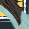 青い壁の中に 黒い壁、 その中にさらに、 海のようにも見えるモダンな絵 しかし、 その前の白いコンソールテーブルも さらに、飛び込もうとしている 女性もこれも絵? |
