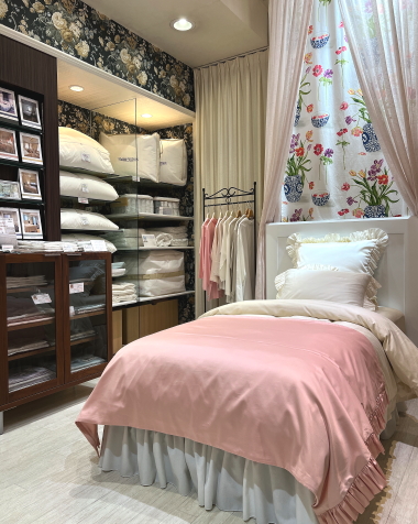 No.46 令和6年(2024年)2月4日(日) 『 立春』 店内に差し込む朝陽は もう春の温かさ ピンク系2色の エリザベート、ジョセフィーヌは さらに春感アップのベッドリネンです。 #マダムワトソン