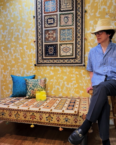 No.277 令和7年(2025年)8月11日(月) 『 ボサノバを聴きながら 』 サングリア片手にボサノバを聴きながら、 ほっとするひととき 「お好きな色は?」 緑、黄色、オレンジと、その組み合わせですね。 「ビタミンカラーがお好きなのですか?」 いえ、人気の「ものことほん」の著者は フランスのかぶれの赤、白、青だそうですから、 違う色を言ってみました。 「きゃ~、あまのじゃく!」 インド、シルジャン・キリム 80X120cm 2枚限り 127,600→49,800yen WOW! 周りにポンポンもついて、超お買い得! お早い方がラッキーです。 #マダムワトソン