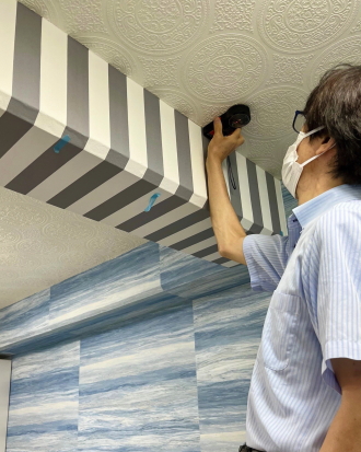 No.283 令和7年(2025年)8月17日(日) 『 間仕切りを作る Part.1 』 本日は2回に分けて、 バックヤードの間仕切りを私が作りたいと思います。 間仕切りと言っても、 バックヤードの荷受け、発送スペースと スタッフルームの休憩スペースを 間仕切るだけのことです。 それもカーテンで。 ![]() そのためにはカーテンレール、 部品と道具が必要です。 まずは、道具ですが、下地検知器という、壁の下地が どこに入っているのかを探る機器です。 ![]() こんな風に壁、天井に当てると、 下地の素材が木なのか、金属なのか、コンクリートなのか 探ってくれます。 レール取付けには欠かせないグッズです。 下地は向き(方向)、そして間隔が決まっていますので、 ある程度は予測がつきますが、 実際にクロスの上からハリをさしてみて、 突き当りがあれば、そこがビスを打つ位置になります。 さて、ビス位置が確定すれば、レールの位置がきまりますので、 レールを取り付けて、カーテンを掛けるだけです。 どんなゴージャスなカーテンも簡単な間仕切りカーテンも 下地がないと、カーテンレールがつけらないのです。 それでは、続きは、また明日のお楽しみ! #マダムワトソン