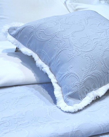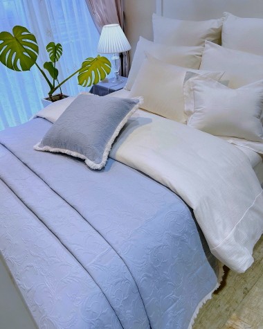 No.324 令和8年(2026年) 2月24日(火) 「春の青空色」 まだ陽差しの強くない春の青空は 薄くオブラートのかかったような 淡いブルーに見えます。 真っ白い雲のようなフリンジが四方を飾り その淡いブルーのジャガード生地でできた とてもエレガントなマルチカバーをご紹介します。 アラベスク模様の膨れ織りがなんとも優美です。 アイテムはなんにでも使える マルチカバーとクッションカバー 数量限定品です。 マルチカバー 200x250cm ¥42900 ⇨ ¥24800 税込 クッションカバー 45x45cm ¥6600 ⇨ \3850 税込 四方ホワイトフリンジ付き 綿100% ポルトガル製 マダム・ワトソンインスタグラムはこちらからどうぞ! #マダムワトソン