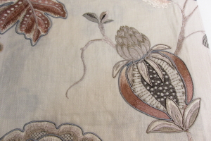 No.0275 2016年12月2日(金) もの 「Colefax&Fowlerの新作ブック」 生地の新作サンプルブックがやって来ました。 Colefax&FowlerのLindonというシリーズです。 藤棚から垂れる藤を大胆に描いた生地 なんて清楚で艶のある姿形でしょう。 こちらはまさに藤色、 アメジスト色とのこと。 花びら、葉っぱのひとつひとつの濃淡がこんなにリアルに出る 染色技術は素晴らしいものですね。 こちらは、まるで、江戸の浮世絵師が描いたような わざとかすれた部分がいい、 シャクヤクでしょうか。 ”カリーナ”という女性の名がつけられているようです。 ”オクタヴィア”という名の生地。 オレンジ色の茶花のような可憐な花。 これでカーテンとドレスを作ってみたいものです。 そう思っていたら、 以前、ショップコンテストの表彰式に行った時のことを思い出しました。 およそ7,80人のスタッフの参加者の中で 1割くらいのショップスタッフは カーテン生地で作ったドレスやジャケットや帽子などを 身に着けていました。 こちらは”ポーシャ”という名の生地。 ザクロの実のような感じですが、 ベージュのベースに黒やブラウンの目の詰まった 15cmほどの大きな実の刺繍が個性的です。 書斎やベッドルームの壁につけたいですね。 こちらは、 45cm角くらいの生地サンプルに一柄さえまともに入らないほどの とても大きなダマスク柄。 高窓のカーテンにしたら、とても素敵でしょうね。 原産国はおフランス。 Colefax&Fowlerは私の大好きなブランドの一つです。 「こんな大胆な柄、部屋のつけられる?」と 挑戦的で突き放したような感じがいいのです。 絵画と同じで、わかる、わからないはどうでもよく、 そんな挑戦を受けたいかどうかで、 最近は自分の部屋のカーテンなどは考えるようになりました。
