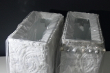 No.0293 2016年12月20日(火) もの 「「「エレガントな、エレガント”もの”」 ダマスク柄の白いベルベットに包まれた これは何かの箱? 片方の上の方にはシルバーとシャンパンベージュの玉がついた トリミングがされています。 巾も奥行きも15cmほど。 高さは約30cm。 そのお揃いでデザイン違いのものが、 オードリーのサイドテーブルの この下の空間にちょうど2個納まるようにできています。 つまり、AさまとAさまのご主人さま用の エレガントな、エレガントなごみ箱なのです。 「残り生地を使って、二人の専用ごみ箱を作ってほしい」と アイデアはAさまよりいただき、既成のごみ箱を 探してカバーを作りました。 だって、クラシカルなパリのウエディングスタイルでコーディネートした こんなにエレガントなお部屋なのですから、 「ごみ箱だってエレガントであってほしい」 そして、私もひとつほしいです。