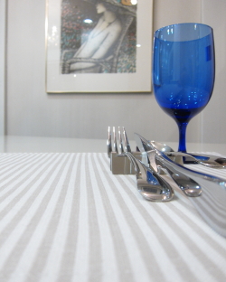 No.0372 2017年3月10日(金) もの 「風景を作り出すテーブルマット」 テーブルリネン、カトラリー、グラス、食器、そしてテーブルフラワー テーブルの風景は、リビングや寝室のインテリアより 遥かに簡単に作り出せます。 「濃紺のストライプのカーテンに サファイヤブルーのレースカーテンなんてどうかな? メタリックなテーブル、合うかな?」 とお悩みなら、 35X45cmの長方形のネイビーのストライプテーブルマットと ブルーグラス、 ステンレスのカトラリー置きで代用して シュミレーションすることもできます。 「やっぱり、濃紺のストライプは強すぎかな? ベージュとアイボリーのストライプの方がいいかな? それだと、サファイヤブルーのレースカーテンの方が 強くなりすぎるかな?」 でも、壁の絵には合うかも? かえってインパクトでて、いいかもしれないし。 それならいっそのこと、リネン無地にした方が もっとサファイヤブルーが前に出てきていいか... 私たちも 日々、いろんな小道具をヒントに、 イケてるコーディネートを探しています。 綿、麻混のテーブルマット3色 上から麻色のリネン無地、ベージュXアイボリーのストライプ ネイビーXアイボリーのストライプ 35X45cm 1枚 ¥900(¥972) すごいのは裏も表も同じ生地の2枚合わせであること。 頑丈です。 そして、汚れていたら、さっとひっくり返すという裏技?もあります! カトラリー置きは、几帳面にきちんと並べたい方のために、 日本製のA型仕様。 左から、フォーク、ナイフ、スプーン用に合わせた 切れ込みが入っています。 Made in Japan ¥1,550(¥1,674) 詳しくは、 下のロゴよりウェブショップの「もの、こと、ほん」をクリックしてご覧くださいますように。 ![]() 写真、文章の無断転用はご遠慮くださいますようにお願い申し上げます。
