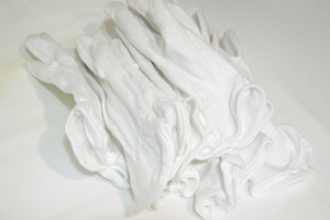 No.0389 2017年3月27日(月) こと 「お出かけ手袋」 ホテルやレストランのボーイさんの手袋は 必ず真っ白でそして、”ぴん”としています。 私たちの白い手袋もそうでなくてはと思います。 店内での作業用はともかく、お客様のお宅で作業する手袋は ぴんとしていた方が断然すてきです。 5、6セットなら5分足らずでアイロン完了です。 何かの余熱でもOKです。 ポイントは手入れて伸ばしてから 形を整えてからさっとアイロンをかけることです。 そして左右を分けて重ねて並べます。 そのあとペアにして折りたたんで重ねます。 最初と最後でこんなに見た目が変わります。 手袋と言わず、パジャマでも、ベッドリネンでも、 アイロンで、ぐっと美人、美男子に変身します。 写真、文章の無断転用はご遠慮くださいますようにお願い申し上げます。