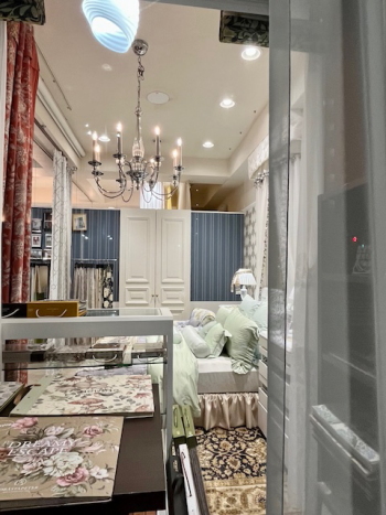 ピンク色のかわいい壁紙を貼って、同じ柄のカーテンを掛け、