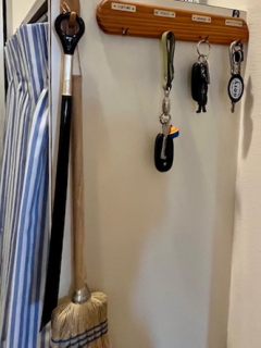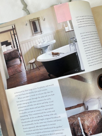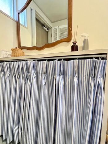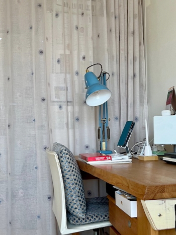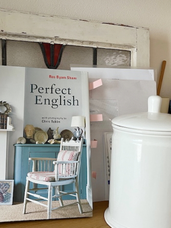 Room No.0177 2025年11月22日 (土) 「好きなものを集めて丁寧に暮らすお手本」 M様邸 まだ、残暑の残る、10月20日過ぎ、 マダム・ワトソンのご近所にお住まいのMさま邸に お邪魔しました。 元はご両親がお住まいだった古いマンションを リノベーションして、数年前からお住まいです。 玄関ドアの前に立った瞬間、 ”あ~あれだ、あんな匂いだ”と、思いました。 前の戸建のお家から持って来られた ステンドグラスのドア、ほら、あんな匂い… 玄関のシューズボックスには、 以前のお家のキッチンの窓用に作らせて頂いた、 ブルー&ホワイトのストライプのカーテンが 見事に再利用されて…と、感心していたら、 その脇には、 フランス語で玄関とか、車とかプレートがつけられた 鍵を引っかけるかわいいフックがありました。 ご趣味で絵を描かれるデスクには ブルーのスタンドが 間仕切りのレースカーテン、シートクッションと 見事にコーディネート。 ああ、やっぱり、あんな匂いです。 ほら、ここにもありました。 このブルーのフラップ扉の収納ケース、 椅子にかけられたバッグのストラップもブルー。 DIYもなさる、M様のセンスを感じつつ、 やっぱり、あんな匂い… ブルーグレーのストライプのバスルームの壁に、 まん丸のミラー、 かくかくした洗面ボール、 カランは不便でも、もちろん、二つです。 そう、あんな匂いとは… カントリーでも、シャビーでも、 デコラティブでも、アンティークでも、 ヴィンテージでも、モダンでも イギリスのクラシックそのものでもなく… そんな型にはまったインテリアスタイルから 好きなものを抜き出して、 いい感じに引き算した、ほっとする匂いでした。 それは、ここから来ていました。 イギリス人のデザイナーRos Byam Shawさんの ”Perfect English”という本。 M様の大好きなテイストがいっぱい詰まった、 表紙から、いい感じですね~。 その日、私は2026年のマダム・ワトソンの カレンダー用撮影の前撮りに伺ったのですが、 10月23日号の「ものことほん」でも ご紹介いたしましたが、 たくさんの絵や、 センスのいいかわいい雑貨がいっぱいで、 あれもこれも見たくて なかなか、肝心の撮影に入れませんでした。 ようやく、リビングにたどりつくと、 やはりマダム・ワトソンで購入された ブロック柄のギャベの絨毯が、 1年前に作らせていただいたソファカバーと 見事に調和していました。 リビングの壁面は全面、収納スペース。 無駄なものがない、インテリア雑誌にそのまま 出てくるような雰囲気、空気感です。 お隣りのステキなドアのこのお部屋には、 今は、オードリーベッド、パラスが置かれています。 モザイク柄のような敷きこみの絨毯が 落ち着けて、いい雰囲気の寝室になるでしょう。 M様の審美眼に合ったものだけを ひとつ、ひとつ集めた丁寧な暮らし方は、 端正でありながら、 ほっとする感じのステキなお住まいでした。 ついつい長居してしまったのですが、 一番最初に「かわいい!」と思ったウェルカムボードも 玄関を出た後で、 抜け目なく、撮影してきました。(笑) M様、またぜひ、お邪魔させて下さいますように。