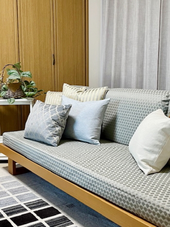 Room No.0173 2025年9月20日 (土) 「ロケーションも景色も最高」 A様邸の新居 日常生活に不便のない街中で、 緑もあって、環境もよく、 さらに、駅からすぐのリゾートなら、 うれしいけど、 そんな都会の桃源郷は小説の中しかないと思っていました。 リゾートとはなかなか行けない 場所にありますから。 しかし、そんな条件を満たしたロケーションで、 リゾートのような暮らしを なさっておられる方がいらっしゃいます。 早速、そのうらやましいA様邸の新居に お邪魔したいと思います。 洒落たマンションの玄関から お部屋に入ると、 踏み心地のいいライトグレーの天然木の床が 廊下からリビングにつながります。 右手にスタイリッシュにコーディネートされた ライトグレーのキッチンを見ながら、 視線の先は、 リビングの窓の向こうに広がった景色です。 段差のないバルコニーから 吸い込まれるように外に出ると、 スコーんと抜けた空が広がっていました。 180度以上、視界を妨げるものが何もない、 広い空と眼下に広がる街の景色。 遠くの山は避暑地の雰囲気。 そのパノラマに圧倒されます。 時折、雲の間から飛び出すように ポンとジェット機があらわれ、 そして、あっという間に飛び去って行きます。 飛行機ウォッチングにも最高の場所です。 マンションご購入前に様々な変更を加えられた A様邸は、照明計画も、収納計画もバッチリ。 バスルームには ちゃんと、タオルクローゼットがありました。 ゆったりくつろげる大きなバスタブと、 ライトグレーで統一されたバスルームは 都会の中のリゾート暮らしに欠かせないデザイン性と 癒しの設備を兼ね備えています。 つなぎ目のない洗面ボールのセレクトまで 完璧です! そして、リビングの横に設けられた和室は、 釣り扉で間仕切ることも、 リビングとつなげることもできます。 その扉は全部、壁面にきれい納まります。 正方形の琉球畳も、和室アートのひとつ。 こじんまりした和室の主な目的は 小さなお嬢さんがお昼ねしたり、 一緒に添い寝するためです。 そのため、 ブラインドのように羽の角度で光をほぼ完全に遮ったり、 入れたり、微妙な調整ができ、 さらに、1枚のロールスクリーンにもなる という便利な窓装飾にしました。 手前に掛けた3色のグラデーションレースカーテンは お部屋の雰囲気を柔らかくしています。 カーテンの丈はお嬢さんが引っ張らないように、 敢えて、短くしました。 和室の間仕切壁を半分開けると リビングとつながりが生まれます。 この、半解放感、いいですね~。 かくれんぼもできそう! A様ご家族の楽しい会話が聞こえてきそうです。 リビングのドレープカーテンは アイボリーホワイトのジャガード。 ひねりの効いたタッセルがアクセントです。 モダンな空間に置かれたアンティーク家具。 アートなデザインのベルベットのソファ。 ライト グレー、アイボリーホワイト、ブラウン、 そして、観葉植物のグリーン。 シンガポールやバンコクなど、都会のリゾートのような ハイソ感を醸し出しています。 音楽関係のお仕事のA様邸にはいつも いい音が流れているようです。 夜はバルコニーに出て、キャンドルの灯りで ヒーリングタイムでしょうか? 外の景色と一体になって、 会話は、 「もう、どこにも行かなくてもいいね」 となるでしょうね~。 ハワイ、タヒチ、エーゲ海に、カリブ海… 遠くのリゾートに大いに憧れを抱くのは、 それがすぐに行けない遠くにあって、 たどり着くまで費用と時間がかかるからだろうと私は 思っています。 たまにがんばってリゾートに行くのもいいけれど、 まいにちがリゾートなら、 もっとハッピーで、楽々。 21世紀型リゾートは、出向かず、 自分の方にリゾートを引き寄せる、 アイデアと想像力で。 最高ですね。 さらに、 焼き立てのおいしいパンが並ぶパン屋さんが すぐ近くにあれば、極上の都会の桃源郷です。 機能的で、アートな都会のリゾート生活を 満喫なさっておられるA様邸は、 理想の暮らしの ひとつのスタイルだと思います。 また、ぜひ、お邪魔したいです。