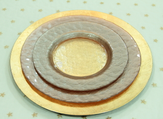 「金の宴と銀の宴」 向きを変えれば、上弦の月、あるいは下弦の月 いつものお茶タイムを、そしていつものお食事を おもてなしの宴に変える魔法のプレート。。 会話が途切れがちな二人の時を 饒舌な三日月が魔法をかける... 今日は金の気分ですか? 銀の気分ですか?
